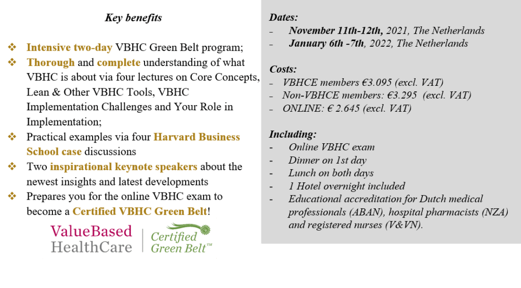 You can do so by following the Intensive VBHC Green Belt program organized by our educational partner The Decision Institute.